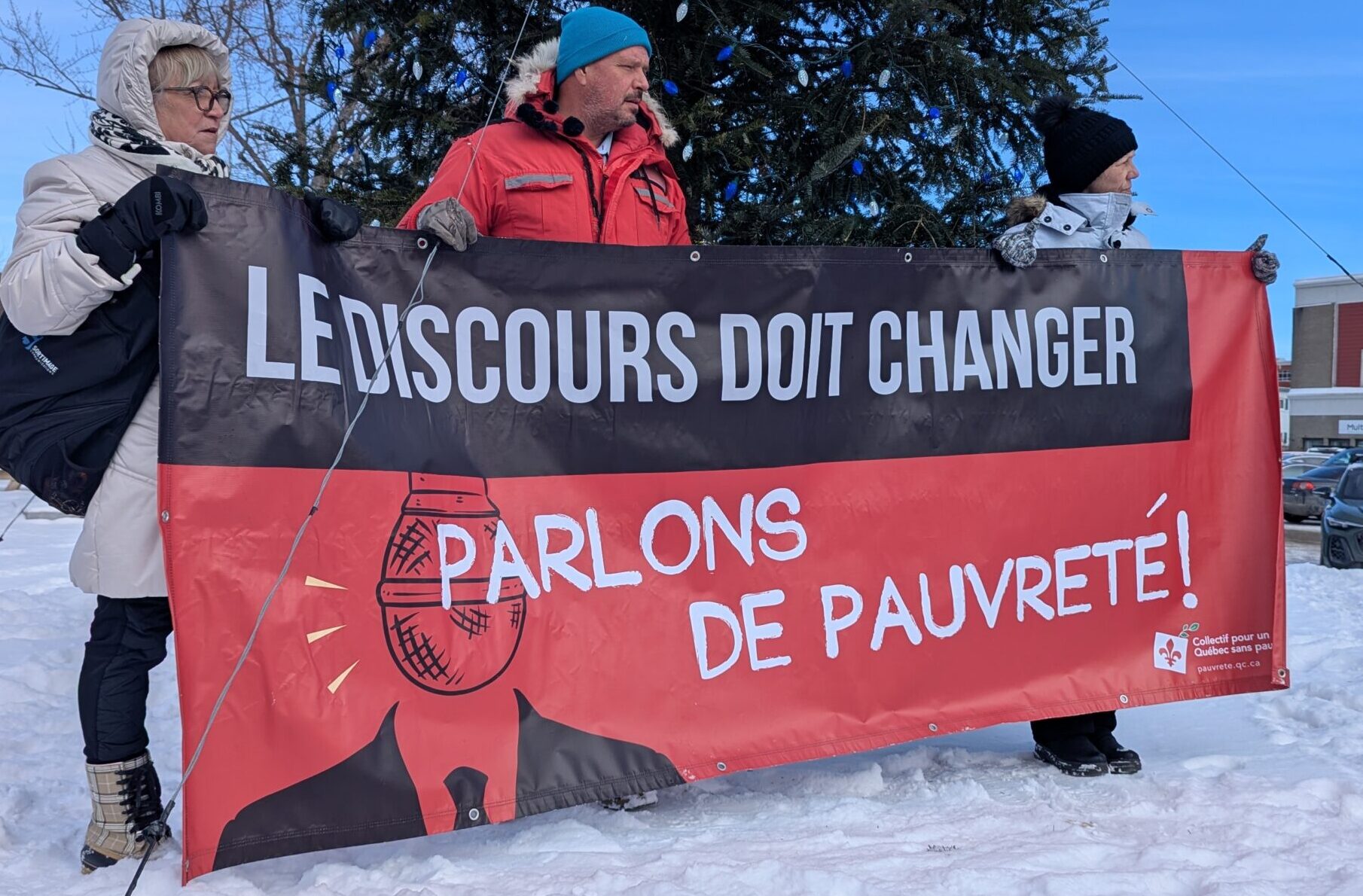 Action de visibilité le 9 décembre à Magog dans le cadre de la visite du Collectif pour un Québec sans pauvreté Retour sur un automne mouvementé et . . .