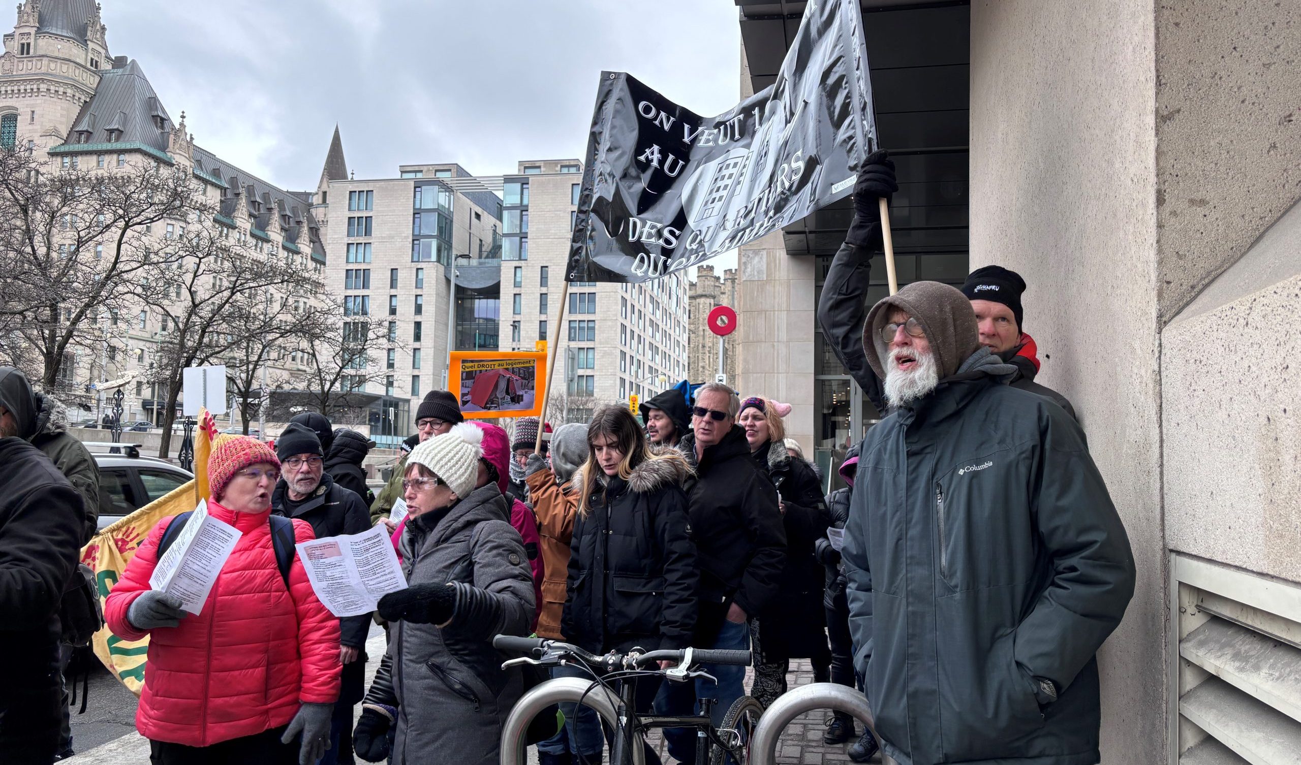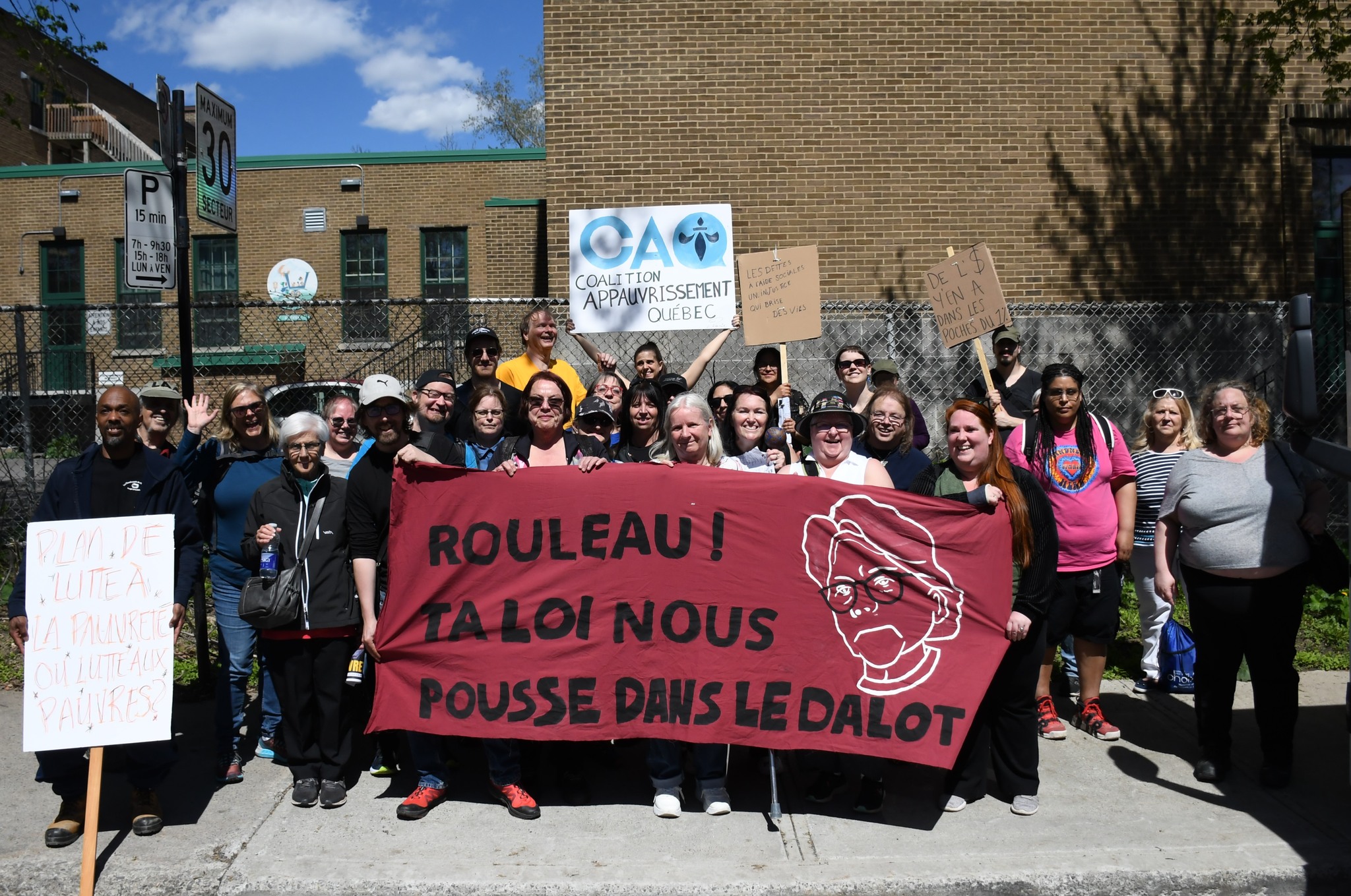 Délégation estrienne pour la manifestation sur les règles punitives à l’aide sociale, 7 mai 2024 (Photo : TROVEPE) Pour un abat des règles punitives . . .